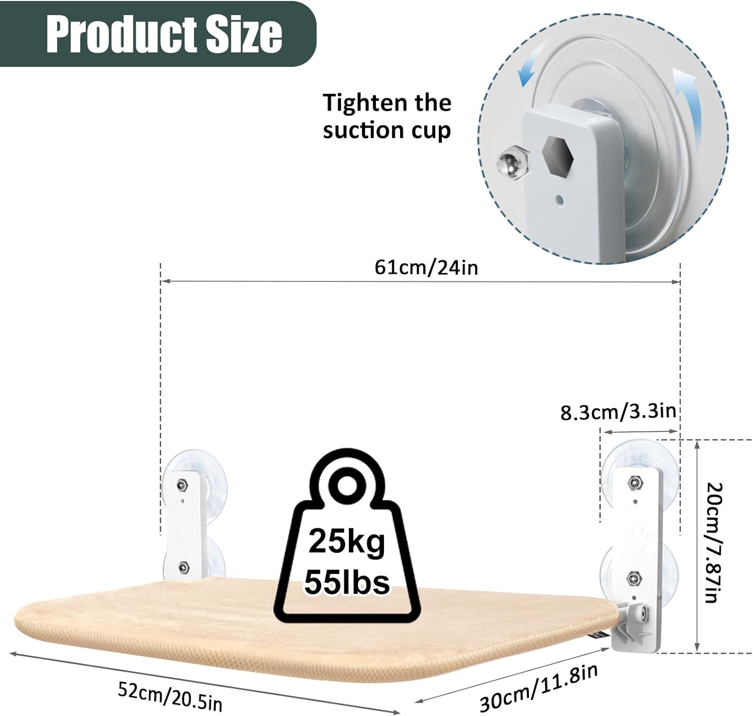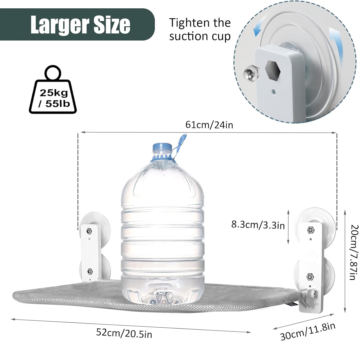 - Larger Space & Bearing Capacity: Our cat window perches measure 20.5*11.8 inches(52*30cm) and can hold large cats or even two cats. Supported by 4 upgraded strong suction cups and thicker steel frame, it is safer and more stable, holding up to 55lbs