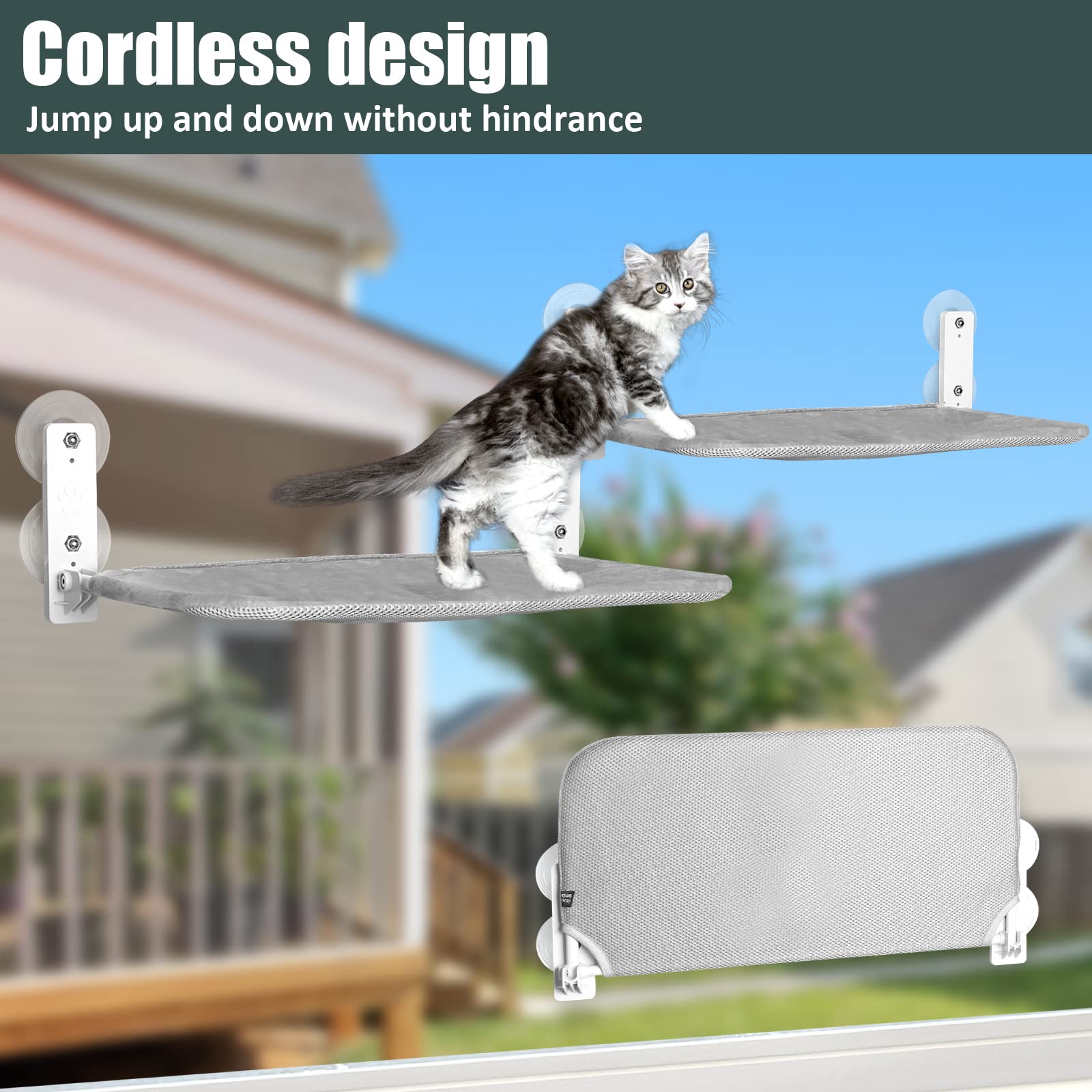 - Space & Time Saving: This cat window hammock is truly foldable. You can easily fold it up when not in use, saving space at home. It's also time-saving since you don't have to disassemble it when closing blinds or curtains. The cordless installing method allows your cat to jump up and down freely, and is also more good-looking than those using cords to hang