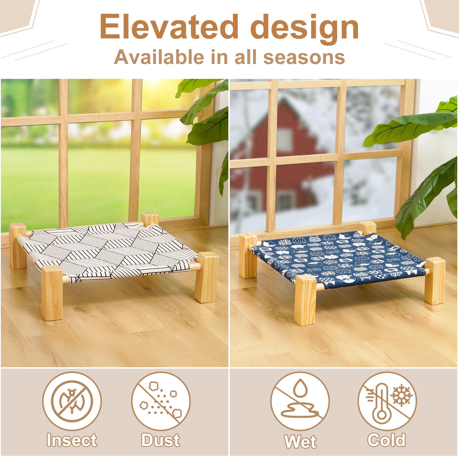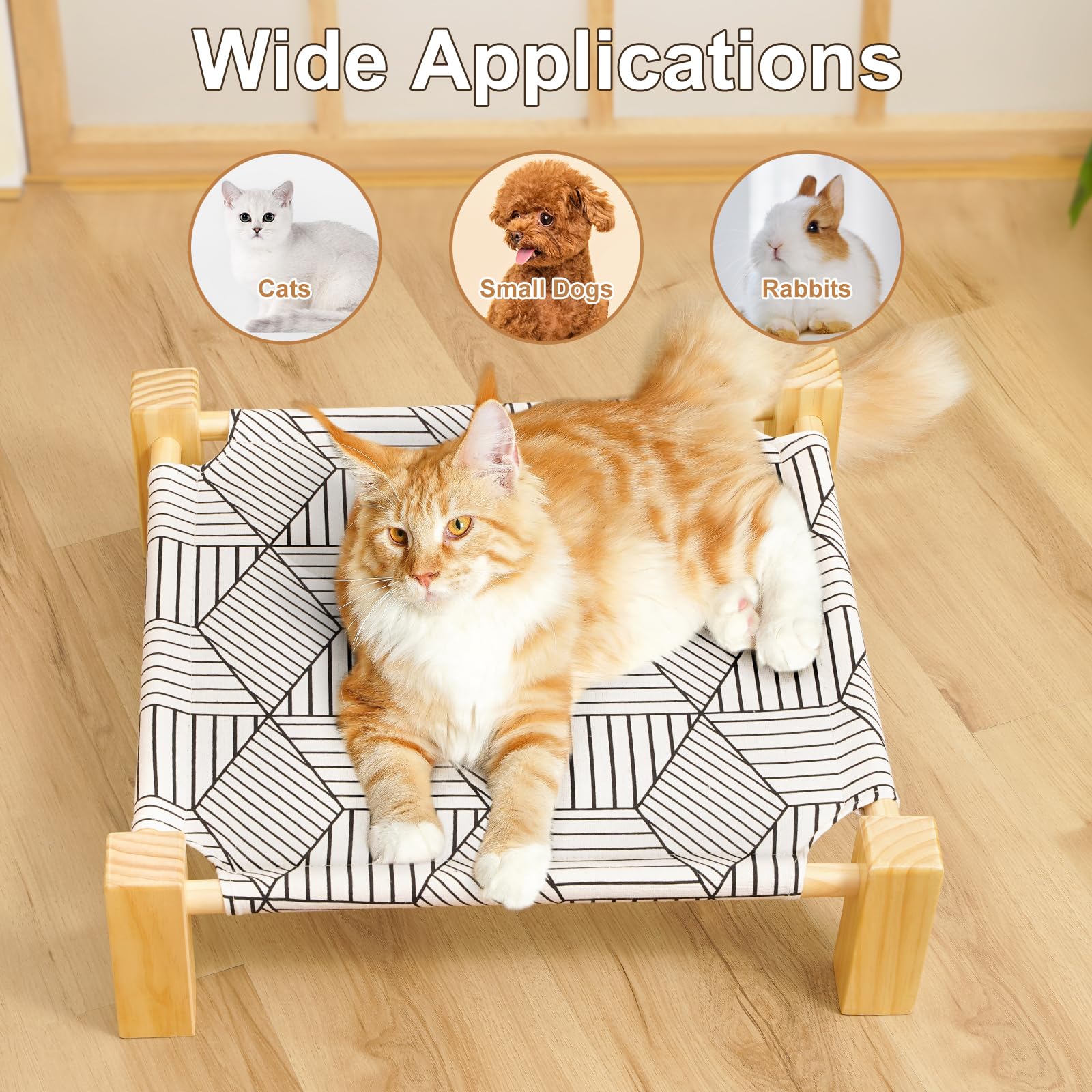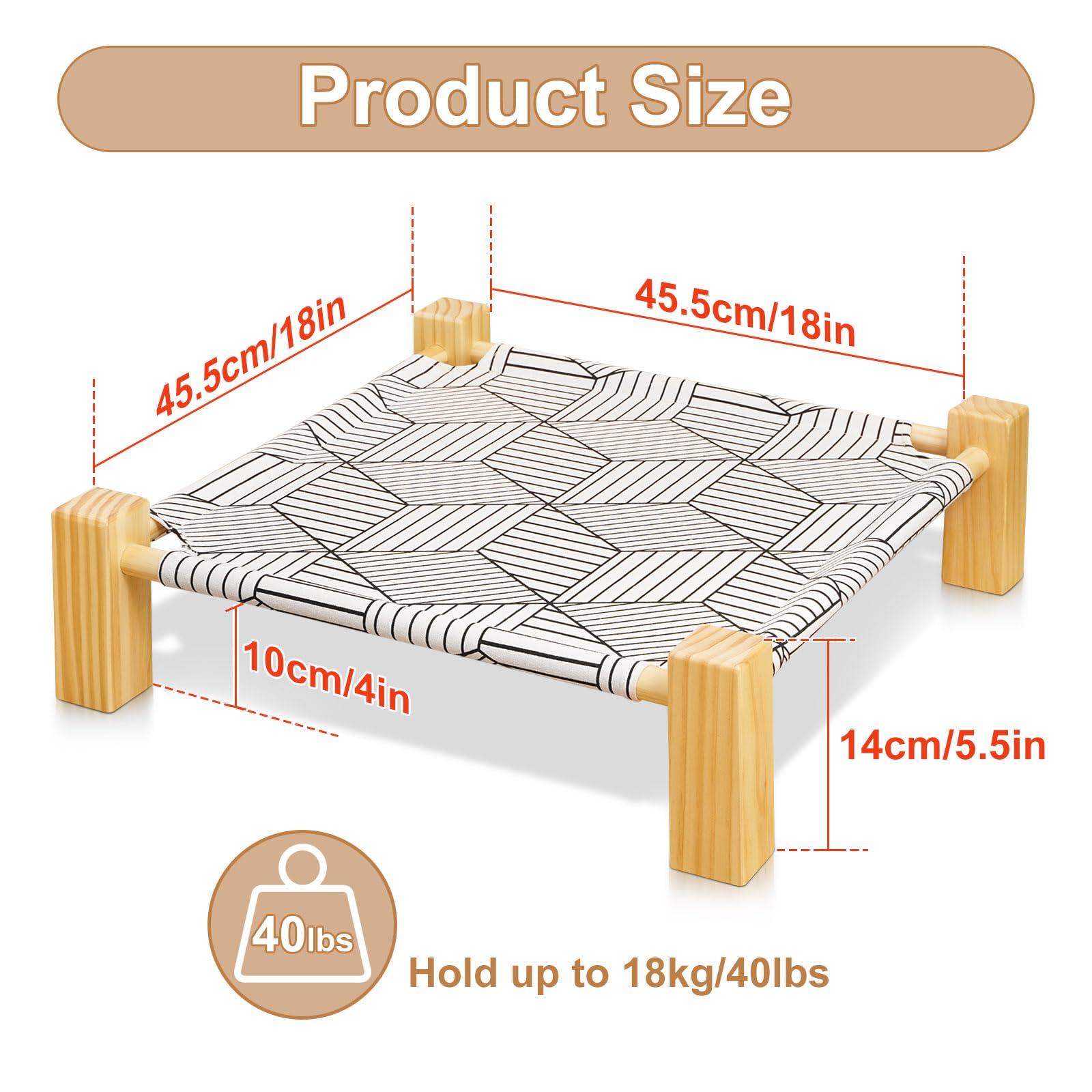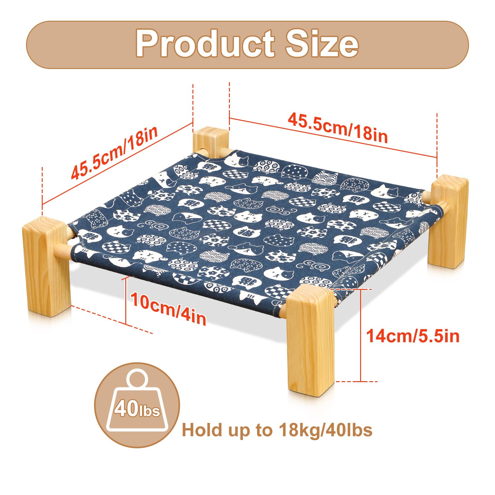 - Large Size: Our raised cat bed mesures 45.5x45.5cm. Even a large cat or 2 cats can easily lie on it, also suitable for puppies and rabbits. The wooden frame of the cat bed is made of high -quality pine wood, holding up to 18kg/40 lbs. Its rectangular structure also makes the hammock more stable.