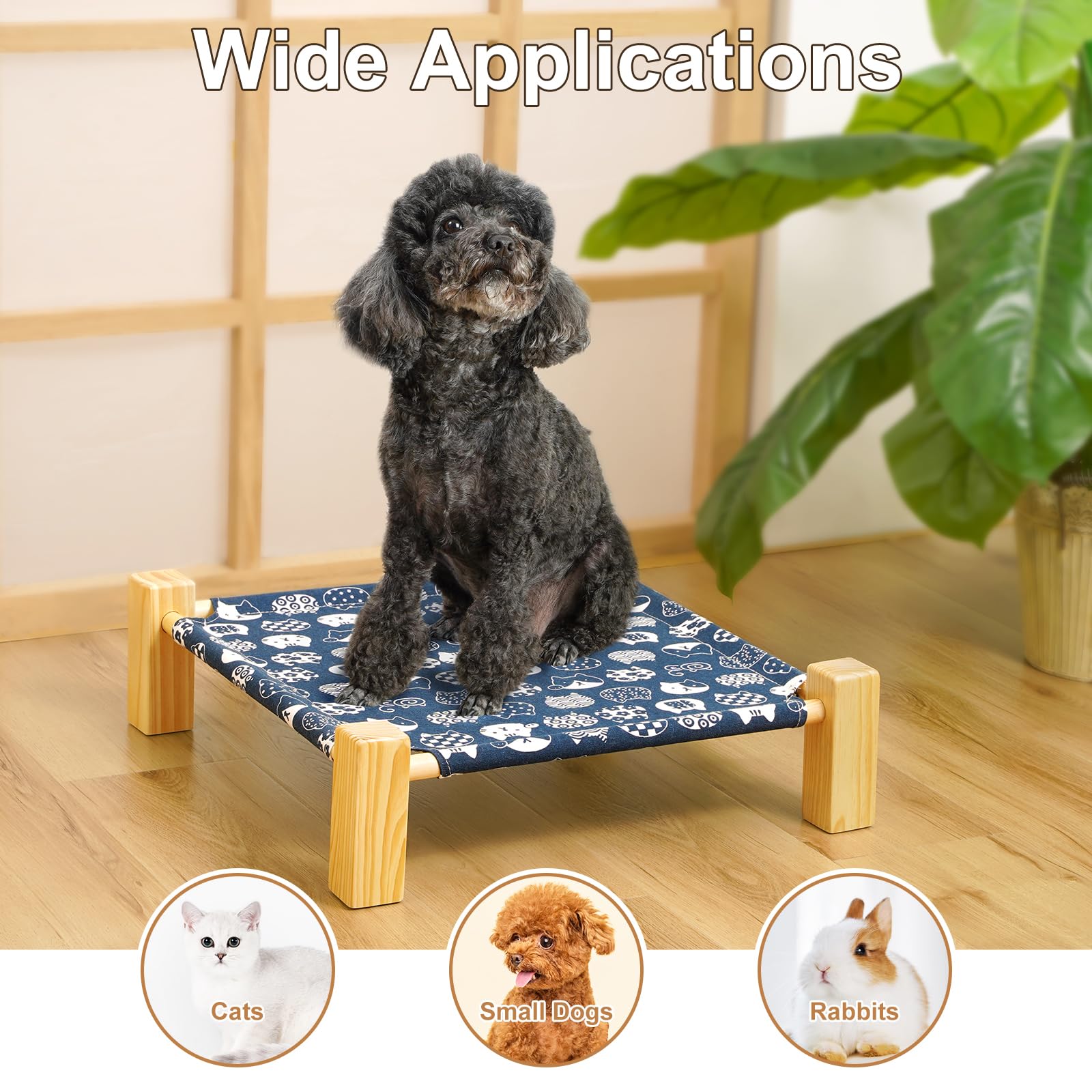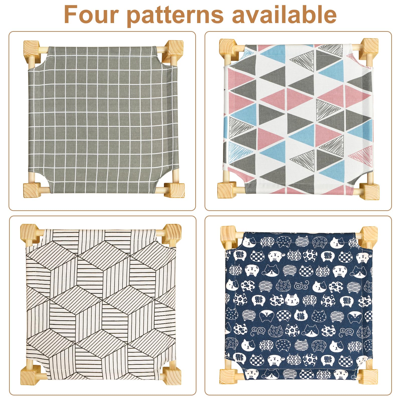 Cat Hammock Bed Elevated Sleeping Chair for 2 Indoor Cats Raised Floor Kitty Cot with Wooden Frame Lifted Stand No Drill Puppy Lounger Pet Beds 18x18in for Kitten Small Dogs Rabbit Bunny
