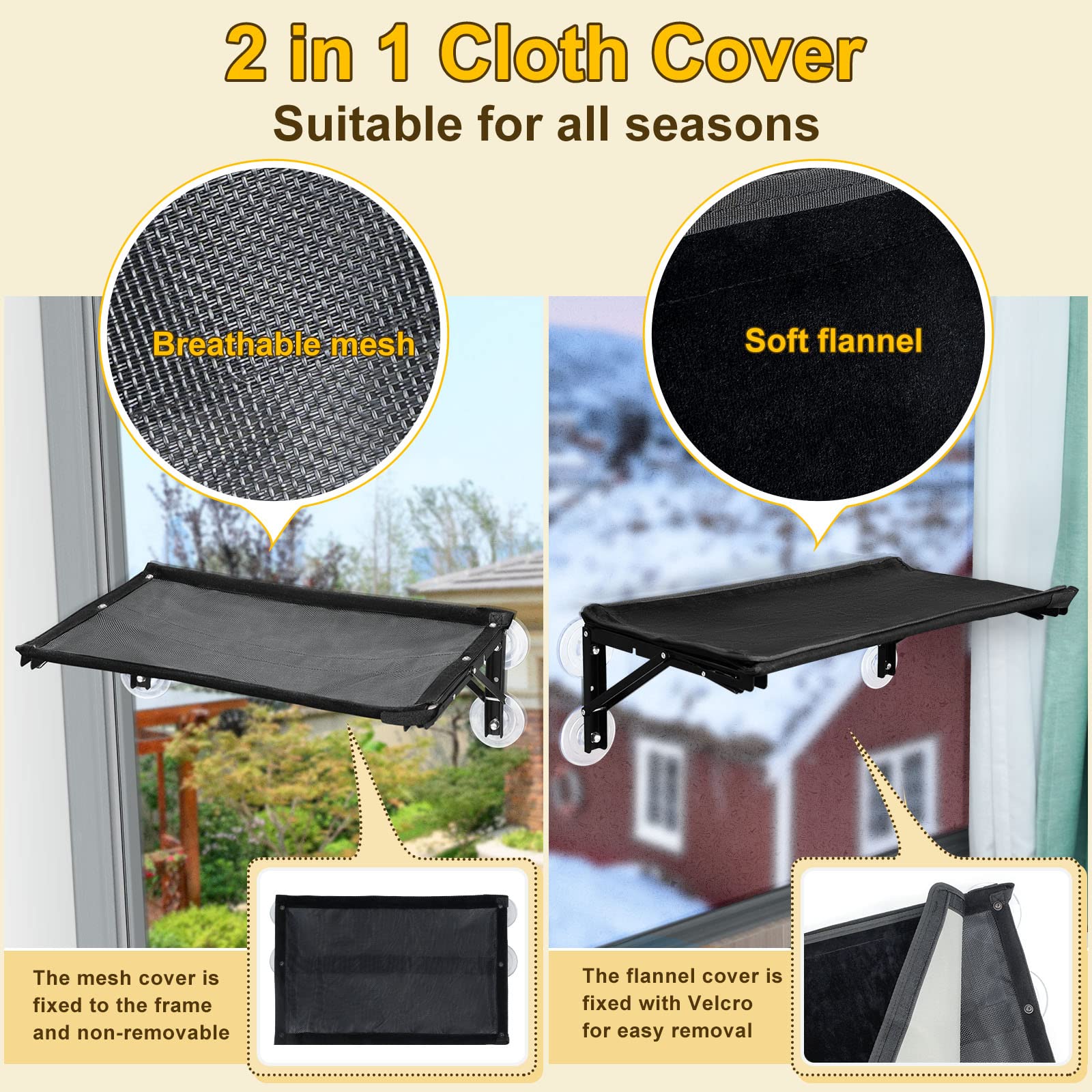 - Suitable for All Seasons: our cat hammocks come with a 2-in-1 cloth cover: The mesh cover is fixed to the frame and non-removable; the flannel cover is fixed onto the mesh with Velcro for easy removal. The breathable mesh keepa your cats cool in hot summer; and the flannel cover providea a warm place for your cat to rest in cold winter.