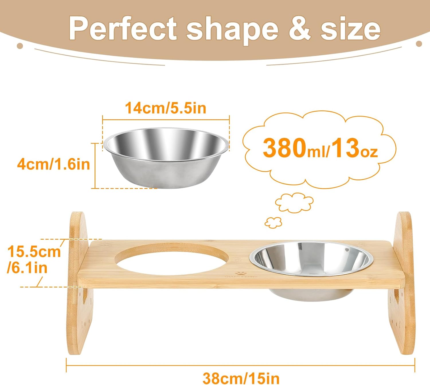 - 【Food Grade Stainless Steel Bowls】The two stainless steel bowls of our cat food holder are food-grade and dishwasher-safe. Compared to ceramic bowls, they are lightweight and not easy to break. The smooth surface of the stainless steel bowl is helpful for improving feline acne.