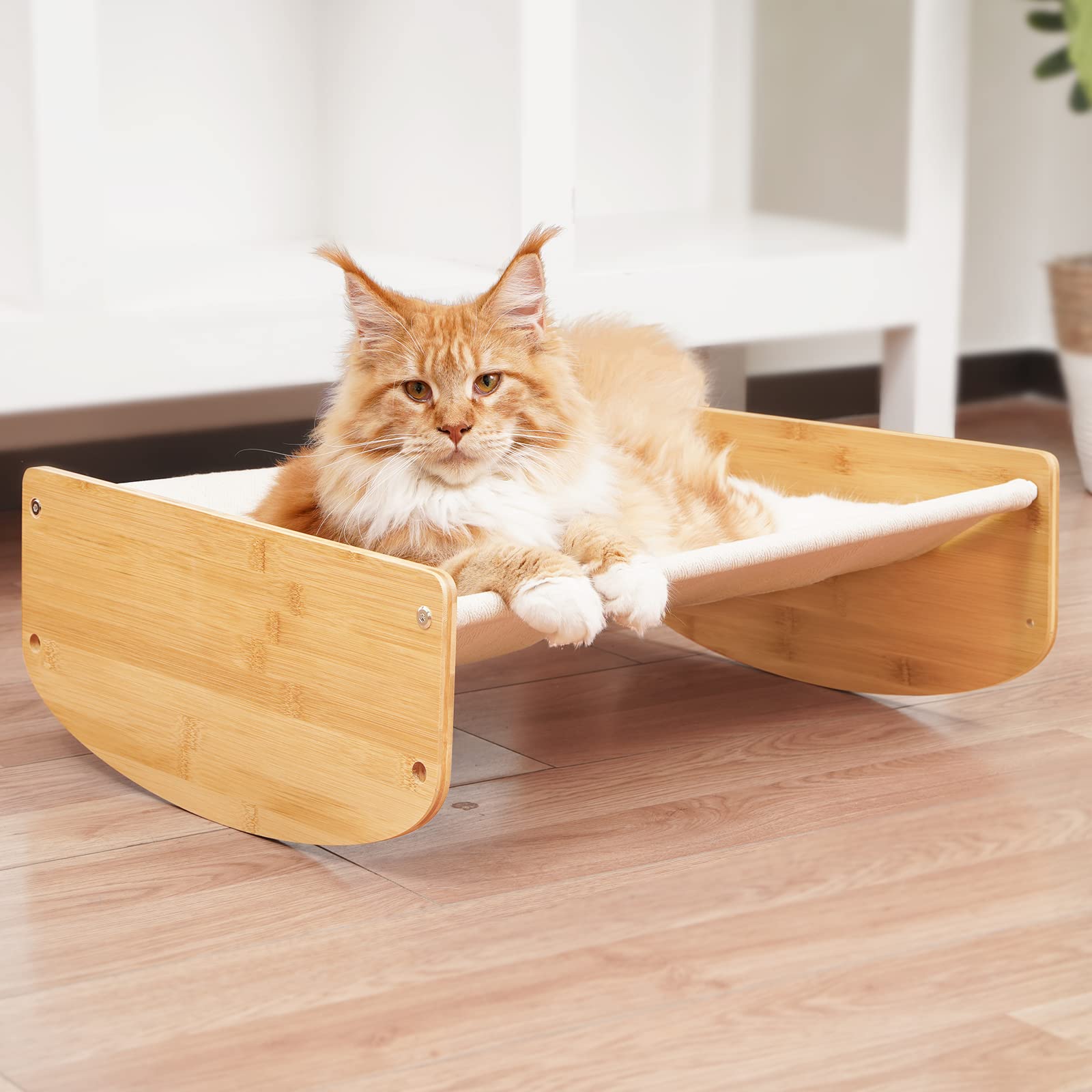 - Versatile Cat Bed: This dual-purpose cat swing bed integrates cradle mode and normal mode, allowing cats to enjoy two different kinds of happiness. (Note: To switch modes, you need to take down and reverse the bamboo boards, and retighten the screws.)