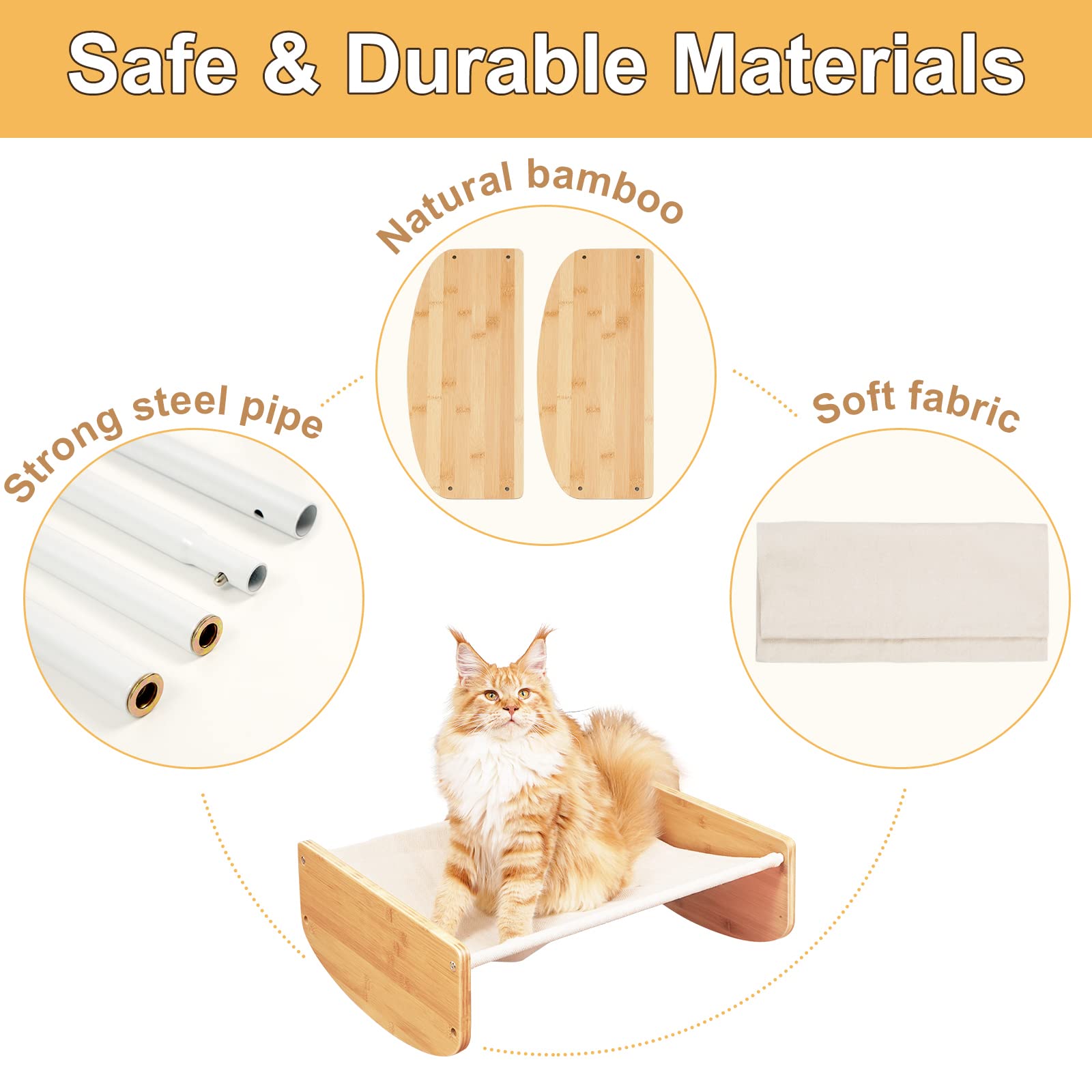 - Easy Assembly: Our multi-purpose swinging cat bed can be assembled in 4 easy steps, comeing with necessary tools and instructions! If you have any questions, please feel free to contact us via "Contact Seller" or email on the description!