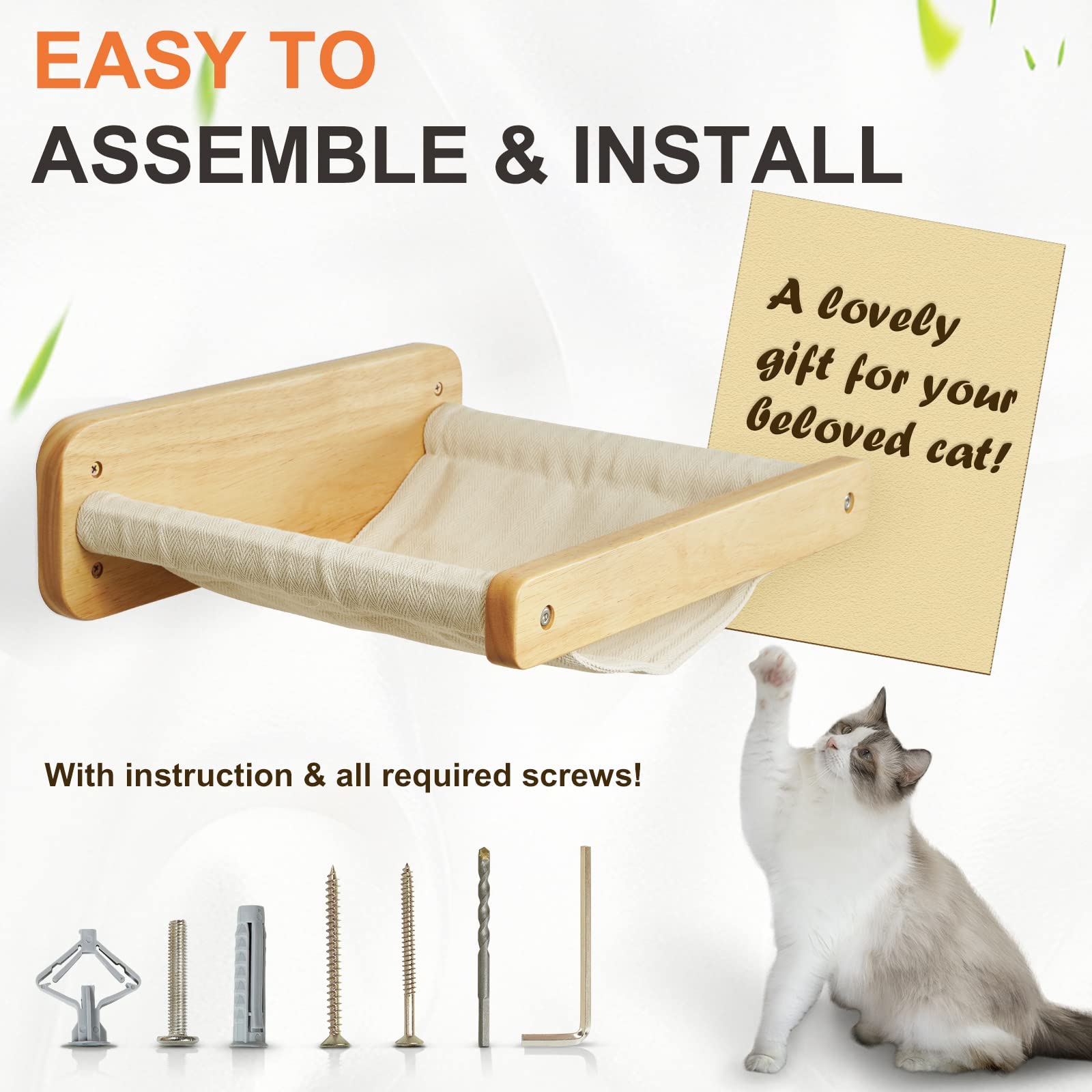 - Easy-to-install Cat Furniture: Our cat hammock can be mounted on drywall or solid wall. It comes with all required screws, anchors and detailed installation instructions. Your cat can use its new furniture in ten minutes! If there are any questions, please feel free to contact us via Amazon