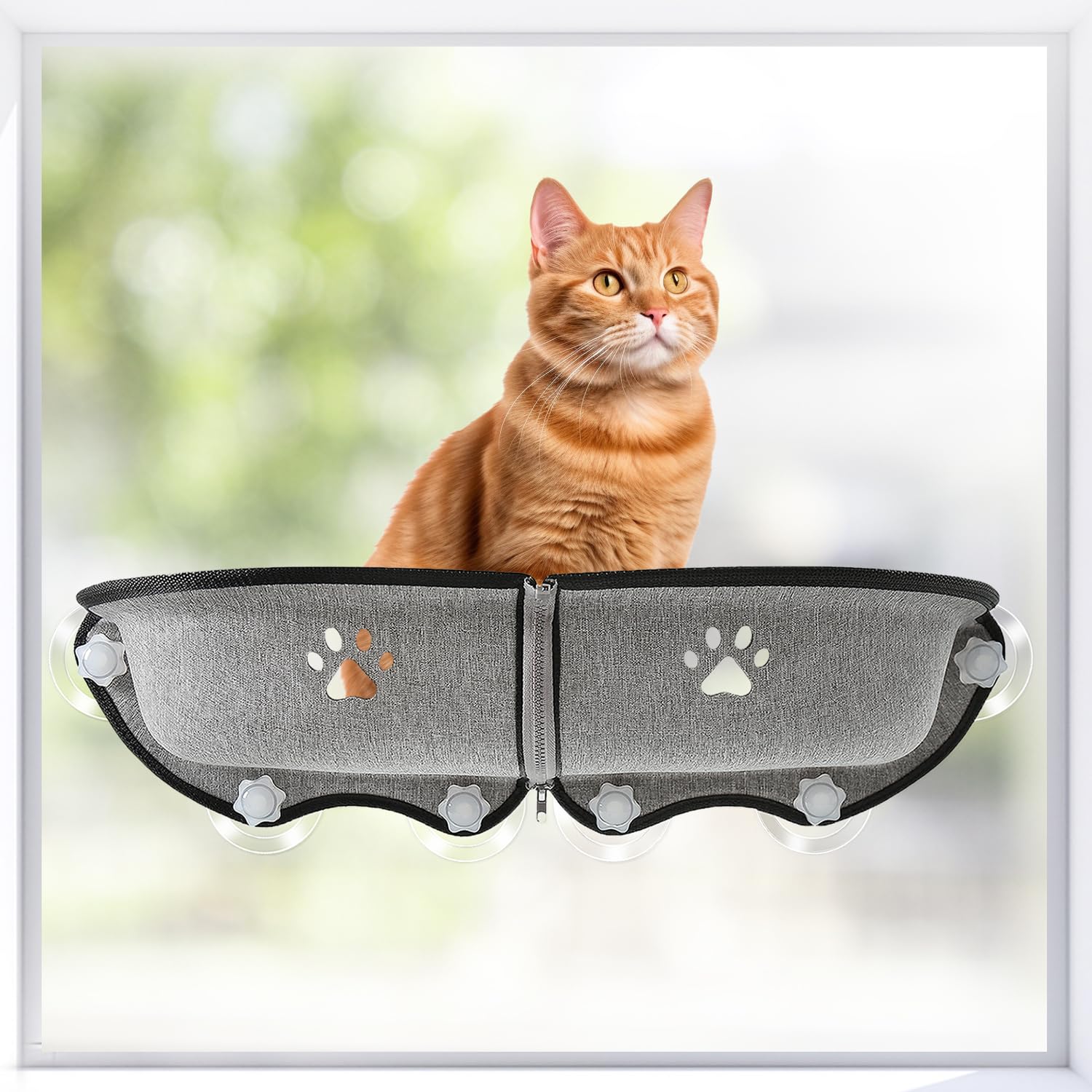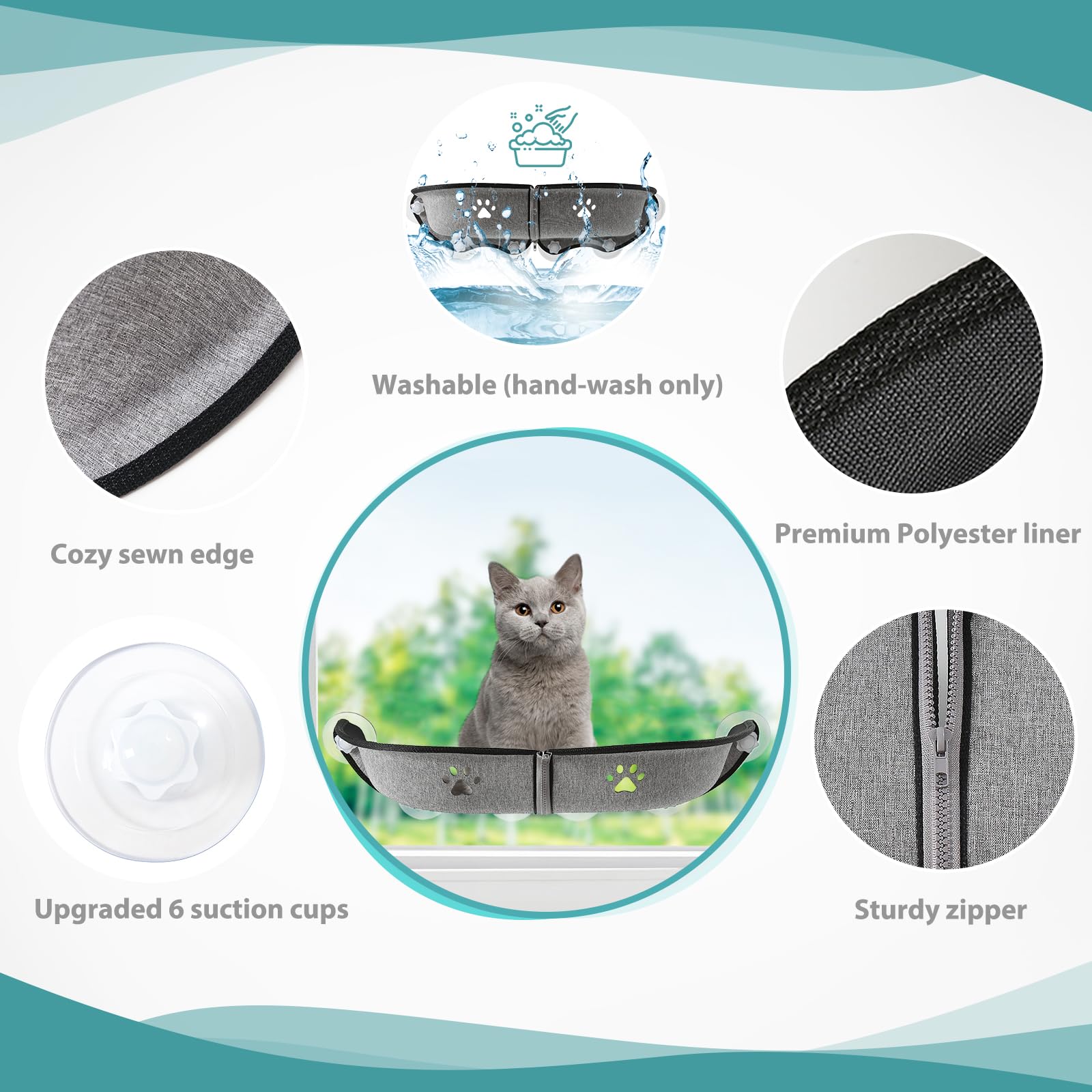 - 【Superior Suction Power】This cat window perch features six large-diameter (3.35in) reinforced suction cups, firmly adhering to the window. The larger contact area and more stress points distribute the weight evenly, making the cat bed more stable and not easy to fall. The thickened suction cup is not easy to deform and can grip the glass tightly for a longer time. With its powerful suction, the cat window bed can bear up to 40lbs.