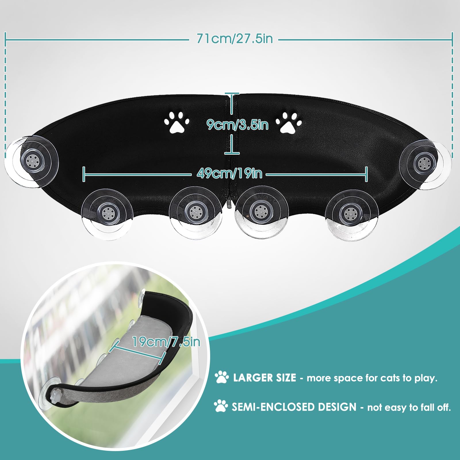 - 【Larger Size for Maximum Comfort】Our cat window hammock measures L27.6*W9.4*H5.9 in. The lengthened and widened design allows cats to enjoy a wider and more comfortable resting place. The semi-enclosed structure is also safer, and your cat can roll and play on it without any worries about falling off.