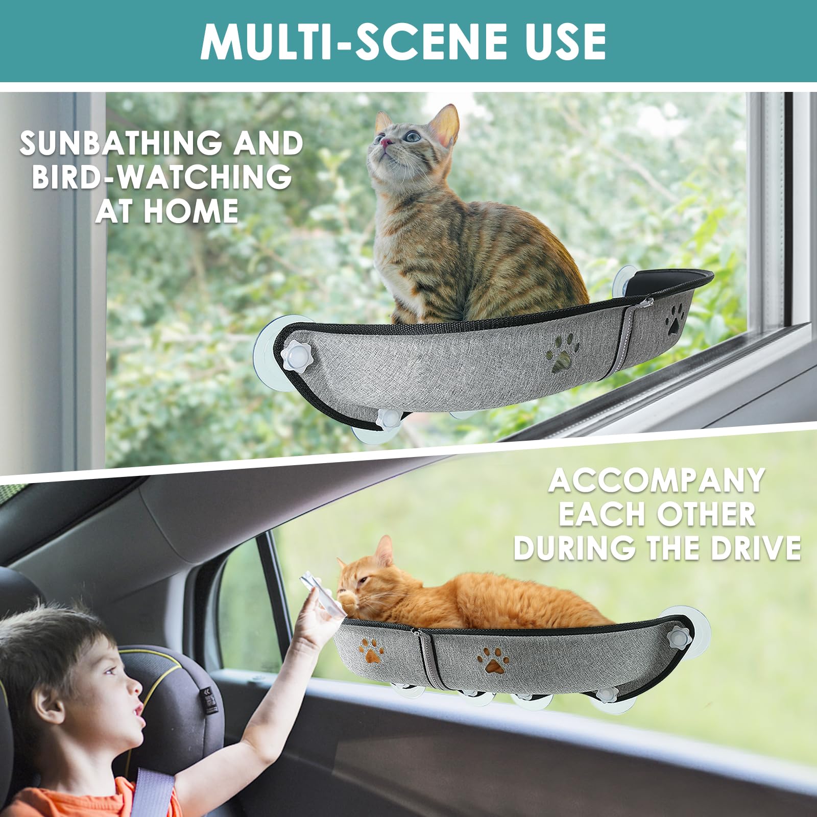 - 【Multi-scenario Use】This cat hammock can not only be used on indoor windows for cats to sunbathe and watch birds, but also can be installed on car windows as an exclusive seat for cats. You can accompany each other anytime, anywhere. It can also be attached to smooth tile surfaces, but anywhere uneven is not recommended.