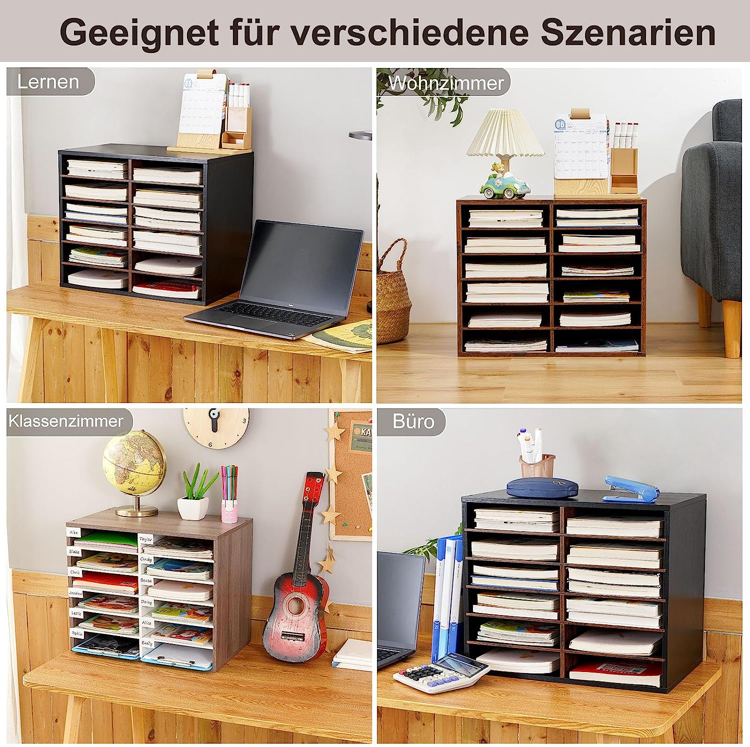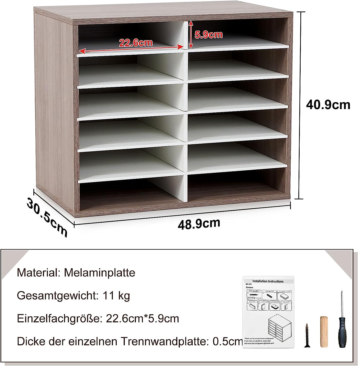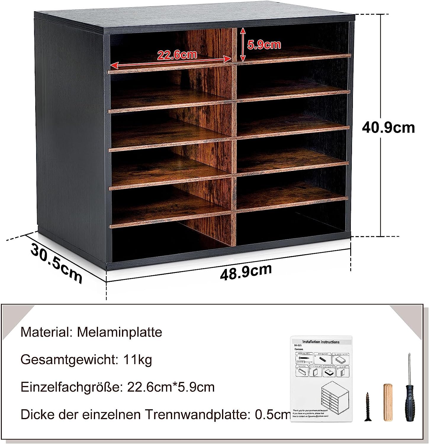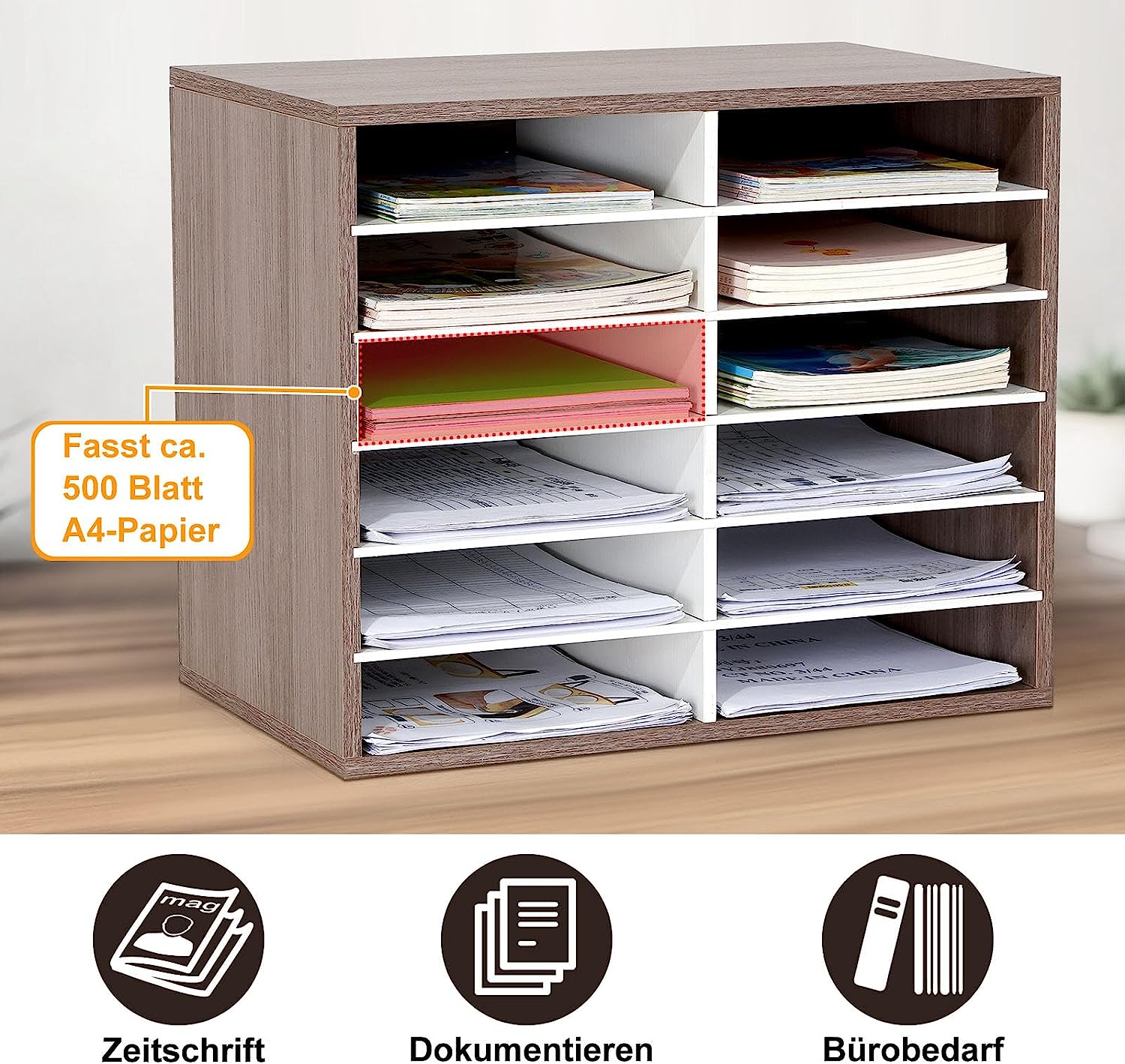 - Practical Design: This document storage desk has 12 compartments. The shared space is convenient for classifying and storing various files, and improves processing efficiency. The dividers can be pulled out to avoid unnecessary rummaging.